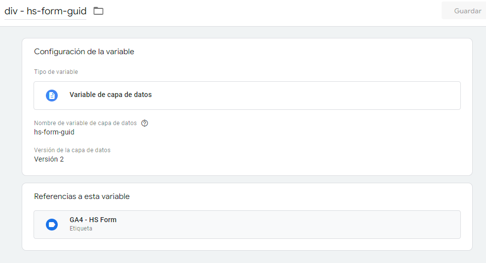 - En GTM, ve a la sección Variables y haz clic en Nueva.