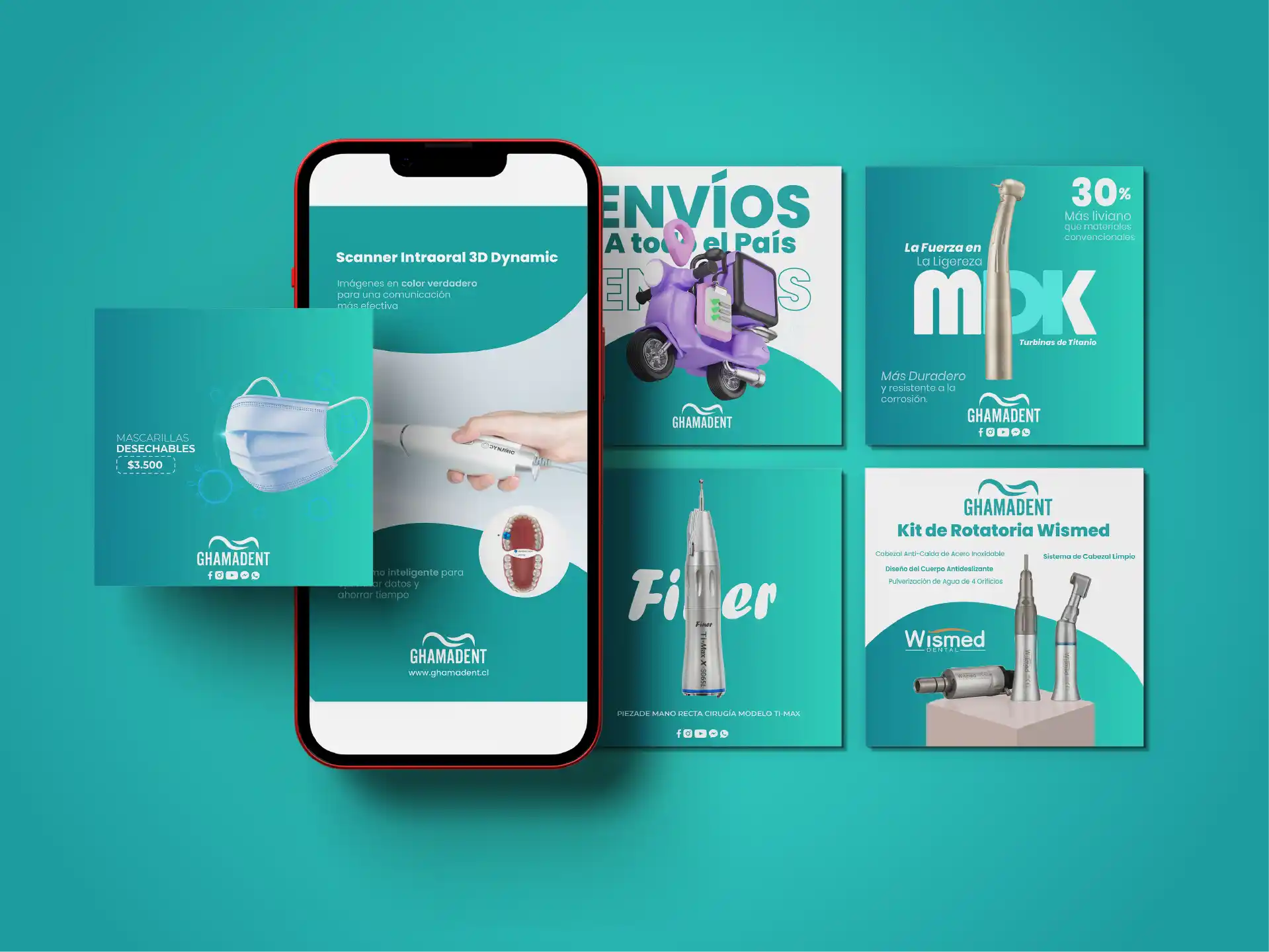 Ghamadent es una clínica dental chilena que ha participado en licitaciones públicas para el suministro de insumos dentales. En colaboración con Efeonce, se implementaron estrategias para fortalecer su presencia en el mercado. Se creó una identidad visual profesional que refleja sus valores y transmite confianza. Además, se desarrollaron campañas en redes sociales como Facebook e Instagram, diseñando contenido atractivo y anuncios dirigidos para aumentar la visibilidad y atraer nuevos pacientes. También se lanzó un sitio web intuitivo y responsive que ofrece información sobre sus servicios y facilita la programación de citas en línea. Estas acciones han posicionado a Ghamadent como una clínica dental de referencia en su región, mejorando su comunicación y presencia en el mercado.